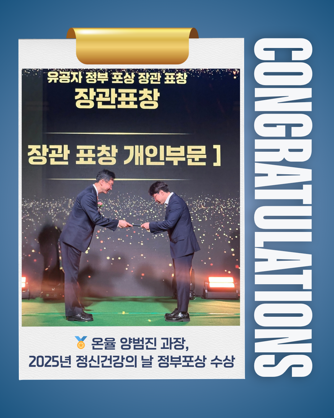 ๐Ÿ† ์˜จ์œจ ์–‘๋ฒ”์ง„ ๊ณผ์žฅ, 2025๋…„ ์ •์‹ ๊ฑด๊ฐ•์˜ ๋‚  ์ •๋ถ€ํฌ์ƒ ์ˆ˜์ƒ ๐Ÿ†