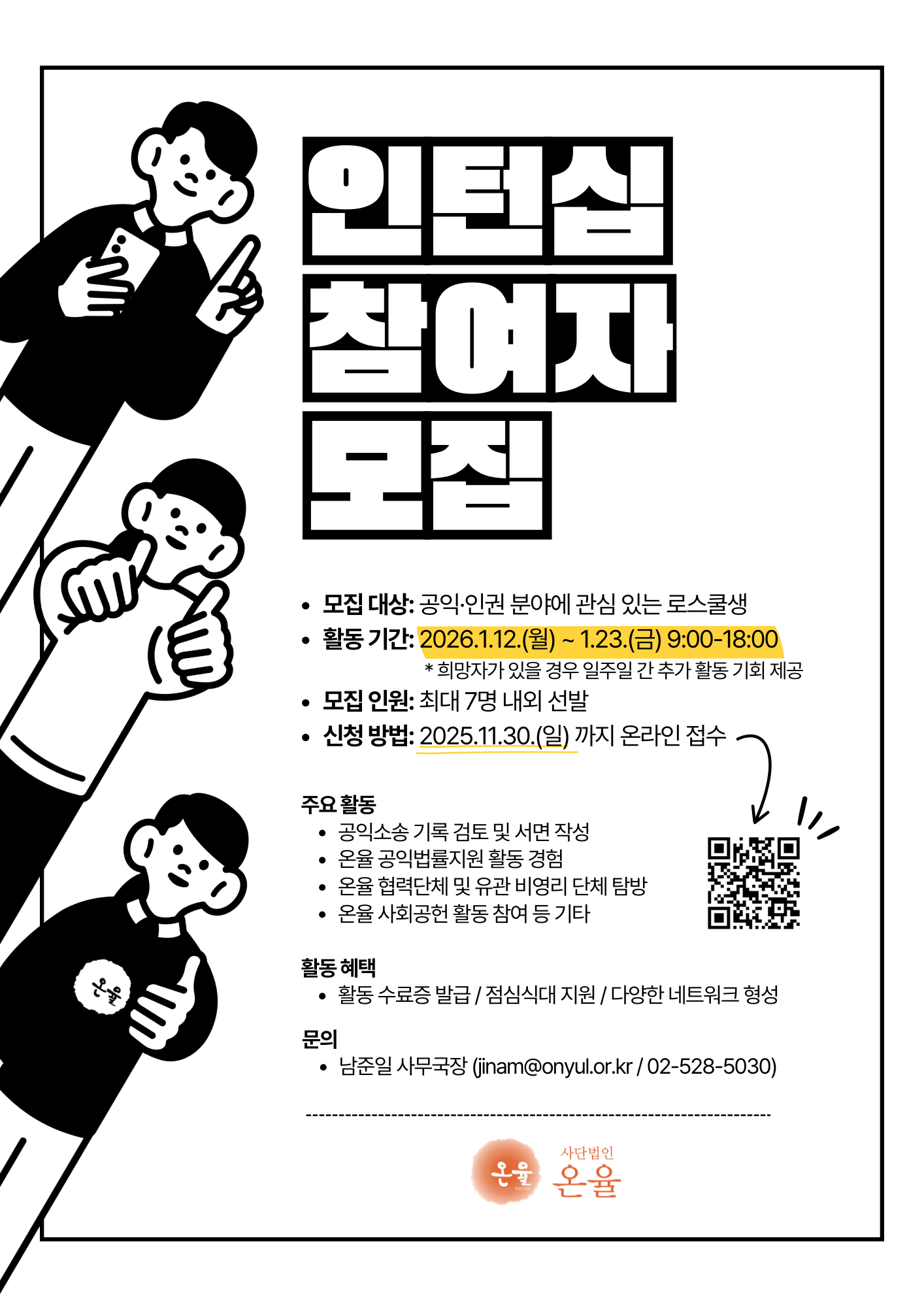 2025 사단법인 온율 동계 로스쿨 인턴십 참여자 모집